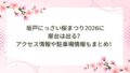 | 夜桜ライトアップ | 18:30〜21:00前後の可能性(現時点では未発表) | 18:30〜21:00 |